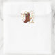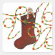 The design on this sticker is from an acrylic painting and a watercolr by Julia Morrill of a christmas stocking she'd made and embroidered with a sock monkey like the ones she used to make.