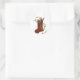 The design on this sticker is from an acrylic painting by Julia Morrill of a christmas stocking she'd made and embroidered with a sock monkey like the ones she used to make.