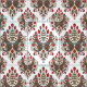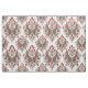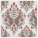 cotton fabric printed with a repeating damask pattern in a sock monkeys theme, red, cream, brown, and black. Suitable for lots of crafts, maybe cute curtains or pillows in a child's room or playroom.