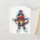 Sock Monkey Holding 3 hearts on a string. Up to some Sock Monkey Business