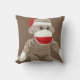 shades of cocoa brown and red are featured on this sock monkey pillow. Personalise it with a name in your choice of font and colour or leave it plain,