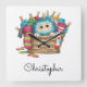 Socksy Blue Fluffy Monster Buddy Square Wall Clock
