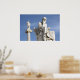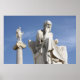 Poster of neoclassical statues of ancient Greek philosopher Socrates and mythological god Apollo, located outside the Academy of Arts of Athens in Greece.