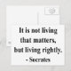 "It is not living that matters, but living rightly." - Socrates