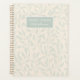 Custom-designed spiral planner featuring natural elegant sage foliage pattern with custom name on soft beige colour background.