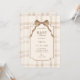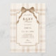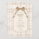 Soft beige brown bow tartan plaid baby shower invitation