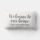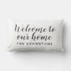 Soft Black Script Welcome to Our Home Lumbar Cushion