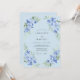 This design features a serene palette of cerulean and sky blue watercolor florals set against a soft, airy background. Delicate clusters of hydrangeas and romantic roses are intertwined with graceful green foliage and eucalyptus sprigs. The aesthetic evokes a sense of timeless elegance and springtime freshness, perfect for a romantic botanical event.