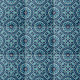 This ceramic tile features an intricate symmetrical design that is reminiscent of classical architecture or vintage textiles. The tile is adorned with a variety of geometric shapes, including diamonds and circles, which combine to form larger circular patterns spread across the tile. The design is meticulously detailed and harmonious, creating a visual spectacle that draws the eye. The tile showcases an elegant mix of dark and light blue hues, adding depth and dimension to the design. The overall effect is both dynamic and sophisticated, making this tile a versatile piece that could add a touch of elegance to any space.