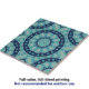 This ceramic tile features a mesmerising kaleidoscopic design. At the heart of the tile, a delicate floral motif unfolds, surrounded by an array of geometric shapes that radiate outward in symmetrical patterns. The design is chraacterised by its intricate detail, creating a sense of depth and movement. The tile’s colour palette is a harmonious blend of various shades of soft blue and navy blue, interspersed with subtle touches of cream. These cool and calming hues, combined with the cream-coloured details, add contrast and visual interest to the design.