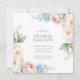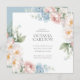 Elegant botanical themed Bridal Shower Invitation with a decoration of soft blue and pink flowers and elegant green foliage at the corners.