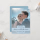 Announce your upcoming wedding day with a simple and elegant photo save the date announcement. Announcement design features photo placement of the engaged couple with a soft blue gradient and banner and handwritten text for the bride and groom's names. If you need assistance with personalisation, please contact me directly to ensure you receive the announcement to your specifications.