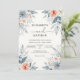 Delicate blooms in shades of soft blue and coral create an enchanting botanical border. This design evokes a feeling of gentle romance with its artistic floral arrangement, perfect for a special occasion.
