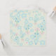 A harmonious blend of soft blue flowers with pale yellow centres, tied with sweet pink bows, arranged in varying sizes. The delicate bouquets are beautifully interspersed across a gentle, pastel greenish-yellow background, radiating a feeling of calmness and sweet simplicity.