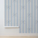 Soft blue and linen coloured vertical striped wallpaper with dusty blue hand drawn bows.
