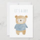 Celebrate your baby boy’s arrival with this delightful baby shower invitation featuring a hand painted watercolor teddy bear in soft blue and beige tones. The front reads "It's a Boy" over the sweet sleepy bear, offering a gentle and modern look for your special event. Minimalist design and a soft pastel palette combine for a stylish, heartwarming touch, perfect for newborn celebrations and charming baby showers.
