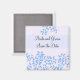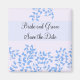 Share your special day with this elegant blue vines design. On a white background with a band of blue with little white polka dots to accent your names and date. Customise as desired.