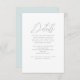 Romantic pastel blue wedding guest detail card includes beautiful calligraphy script, and a delicate blue back of the card. Please view this pretty blue wedding collection for coordinating wedding invitations and response cards.