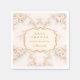 A graceful composition of blush and peach roses nestled into ornate ivory scrollwork, forming a refined baroque frame around the centre panel. Subtle sage greenery and delicate lavender sprigs soften the structure, while warm golden typography adds a polished, regal touch. The palette feels airy and romantic — perfect for a timeless, feminine celebration with classic European charm.