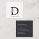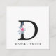 SOFT BLUSH BLUE FLORAL ALPHABETS NAME LETTER D SQUARE BUSINESS CARD