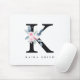 SOFT BLUSH BLUE FLORAL ALPHABETS NAME LETTER K MOUSE PAD
