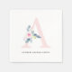 SOFT BLUSH BLUE WHITE FLORAL ALPHABETS LETTER A NAPKIN