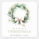 Soft Blush Green Christmas Wreath Watercolor Square Sticker