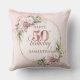 Soft Blush Rose Gold Botanical 50th Birthday Gift Cushion