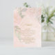 A soft floral of roses in blush pink and sage green is the focal point for many of the pieces of this wedding suite that also features elegant script text and modern design layouts. The wedding 'Details' card shown here has a top border of roses and a beautiful watercolor abstract dusted with gold on the flip side. Easily enter your wedding details using the provided template. View the collection link on this page to see all of the matching items in this beautiful design or search ID828 to see additional colour choices for this design.