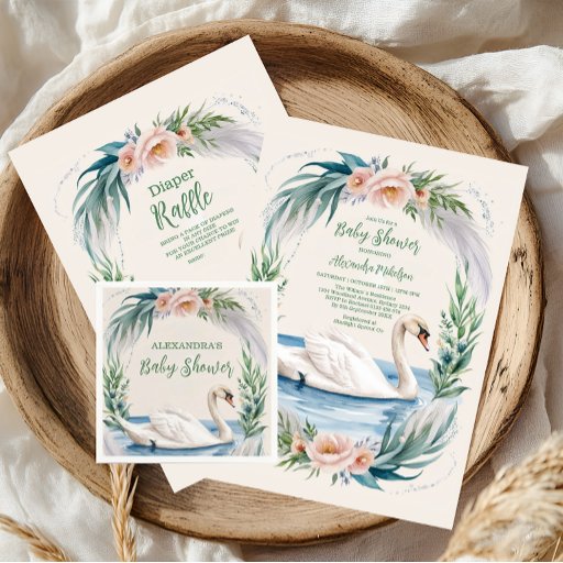 Add a touch of elegance to your baby shower with the Blush Pink Floral Swan Princess Diaper Raffle Enclosure Card! Featuring a beautiful swan adorned with a delicate gold crown, surrounded by blush pink florals and soft greenery, this card invites guests to bring a pack of diapers for a chance to win a special prize. The graceful swan princess design, paired with soft pastel hues and floral accents, perfectly complements a sophisticated, fairytale-themed shower.