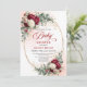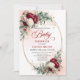 Celebrate a special upcoming arrival with this boho baby shower invitation featuring rich burgundy, deep red, marsala, and maroon watercolor peonies, accented with soft eucalyptus greenery and elegant gold details. This warm, romantic color palette creates a stylish and inviting look, perfect for bohemian, rustic, or modern baby shower themes.