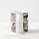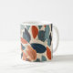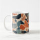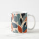 An elegant cup of ceramic coffee with a leaf design in soft tones such as mint green, beige, pale pink and celestial. The shape is classic, with rounded edges and a comfortable curved handle. The leaf pattern, delicately distributed around the surface, conveys a feeling of calm and nature.