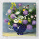 Soft Colour Flower Vase Print. Create a peaceful oasis in your home with this stylised watercolour vase of flowers. Delicate hues of blues, yellows, and purples bring tranquillity