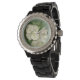 This wrist watch is embellished with elegant artwork in soft pastel colours picturing three creamy white oakleaf hydrangea blossoms with buds accented in green.