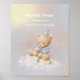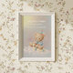 A delicate watercolor set perfect for children’s celebrations: a sweet pastel teddy bear sitting on a gift