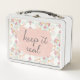 This is a standard metal lunchbox that appears to work just fine. We designed this box ourselves with an uploaded photo and custom text on the front and back. It looks absolutely beautiful except the front of the lunchbox is not centered like it shows in the photo. The print borders don't align with the inset flat part of the box where the preview photo online showed it perfectly centered in there. The back looks nice and centered though.