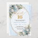 Soft Dusty Blue Floral Gold Sweet Sixteen Invite