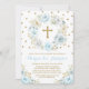 Soft Dusty Blue Gold Floral Baptism Christening Invitation