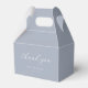 Perfect for a "Something Blue" or coastal wedding theme, these elegant favor boxes features soft dusty blue color with delicate calligraphy. A part of the "Delicate blue floral wedding collection".
