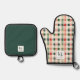 Soft Evergreen Gingham Monogram Oven Mitt & Pot Holder Set