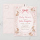 Soft Floral Bunny Baby Shower Invitation Postcard with Bow Pattern Back