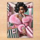 This elegant illustration features a stylish fashion diva surrounded by beautifully wrapped gifts, pearls, and designer shopping bags. Draped in a plush pink fur coat with sparkling jewellery and flawless vintage curls, she embodies the energy of luxury shopping, feminine confidence, and the soft life aesthetic.