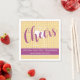 Stylish "Sunshine Mist" napkins from our Soft Glamour Collection. Elevate any occasion with our soft yellow napkins featuring a subtle polka dot pattern, clinking champagne glasses, and the word 'Cheers.' Customise with your own text on a vibrant magenta banner – perfect for adding a personal touch to your celebrations.. Complete your party with these chic essentials." 🍽️💙🌟