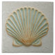 Soft Gold and Aqua Coastal Scallop Shell Ceramic Tile
