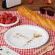 This design was inspired by a single soft-gold balloon shaped like a tiny teddy, floating gently across a clean white space. The simple layout and warm tones create a modern, elegant look, making these plates a charming detail for a neutral baby shower table.