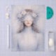 Ethereal winter portrait featuring a serene young woman adorned in a delicate frost-kissed floral crown, with soft white roses and icy blue sprigs cascading around her face. A blindfold gently covers her eyes, creating a mysterious, dreamlike quality that blends Gothic Romance with soft winter fantasy. The muted palette of powder blue, ivory, and frosted grey gives this design a calm, almost celestial atmosphere, while the fine botanical details add elegance and depth. Subtle snow-like textures and lace-inspired elements enhance the overall softness, making it ideal for shabby chic, dark academia, and romantic decoupage projects. There is a gentle kawaii softness to her expression despite the veiled eyes, giving the design a unique balance between innocence and mystery. Artwork similar to a soft-focus oil painting with watercolor influences……PERFECT FOR: Furniture upcycling, vintage furniture panels, romantic home décor, shabby chic crafts, mixed media artwork, canvas projects, decorative trays, keepsake boxes, seasonal winter crafts, wedding décor, bridal projects, soft gothic themes, handmade gifts, boutique craft items… 🖤 NOTE 1. This design is available in two options: Left and Right. You can find them in the Collection shown below. If they don’t appear there, try searching for their unique identifiers: FH9L for the Left design and FH9R for the Right version… 🖤 NOTE 2. The 18lb tissue paper is just the right weight for all your decoupage needs. The largest size is great for those big, bold projects, while the smaller sizes are perfect for adding detail to your other creations.
