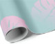 Modern and trendy wrapping paper with soft pastel gradient. Minimalist monstera leaves pattern. Blue and pink colours.