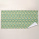 A pattern of multicolored shapes is arranged in a grid format, displaying various shades of green and yellow. Different tones of the squares create a mosaic-like effect that is simplistic but eye-catching.