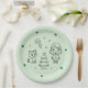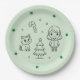 Soft Green Cute Girl and Cat Christmas Design Paper Plate