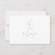Fresh and lovely with playful elegance. This 2-sided wedding RSVP response card features a floral framed monogram in soft green colours against a crisp white background. The soft green font is repeated at the back of the card.